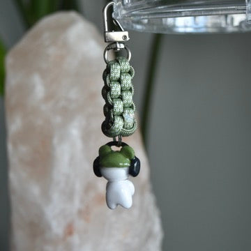 Handmade sculpted charm using polymer clay and varnished using UV resin for shine and durability. Rope also hand knotted.