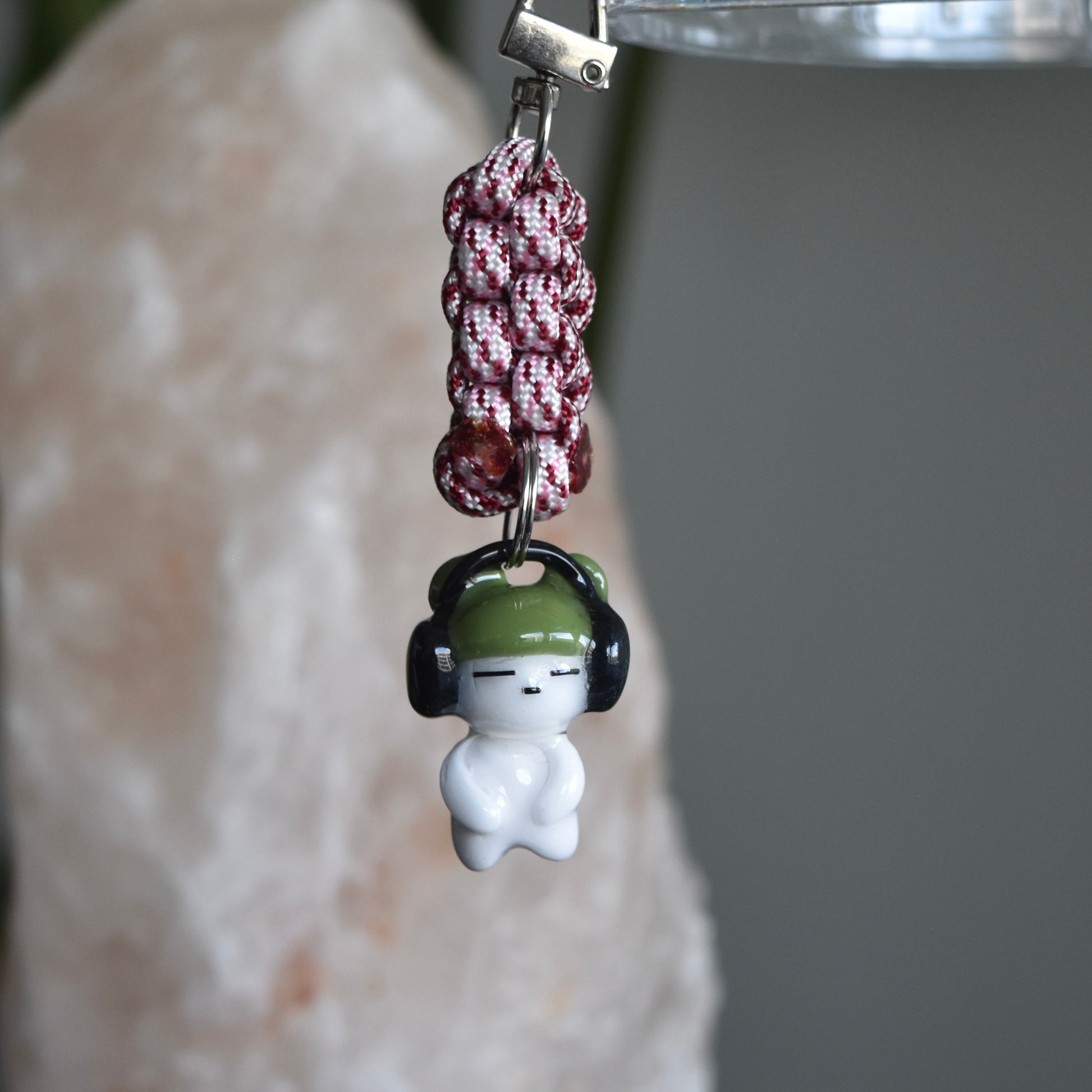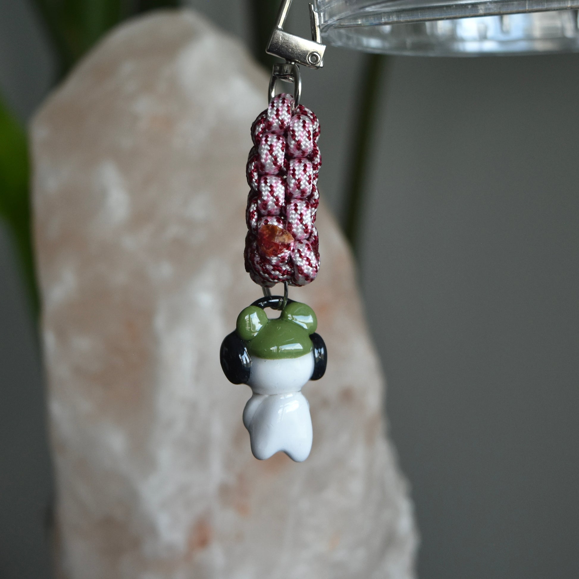 Handmade sculpted charm using polymer clay and varnished using UV resin for shine and durability. Rope also hand knotted.