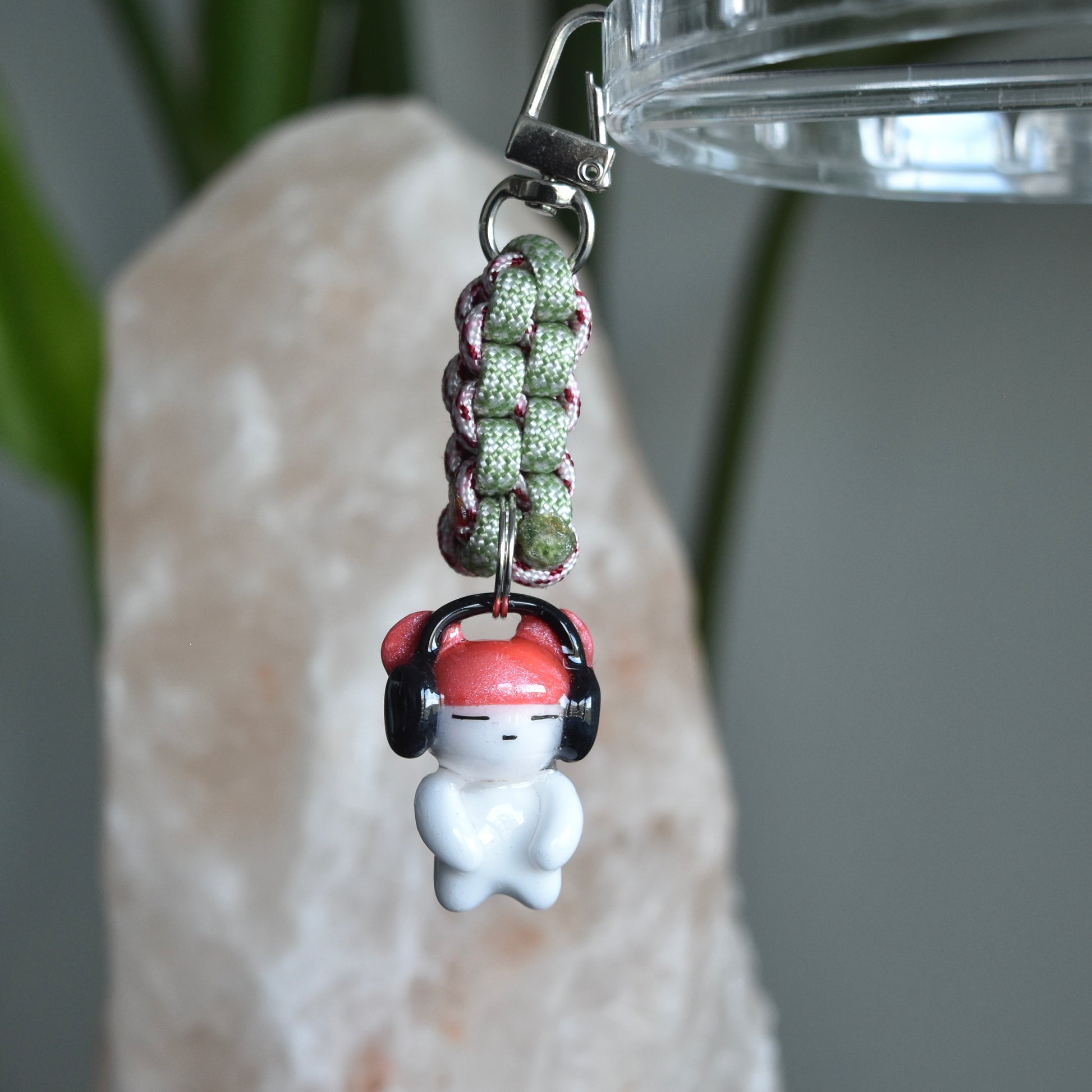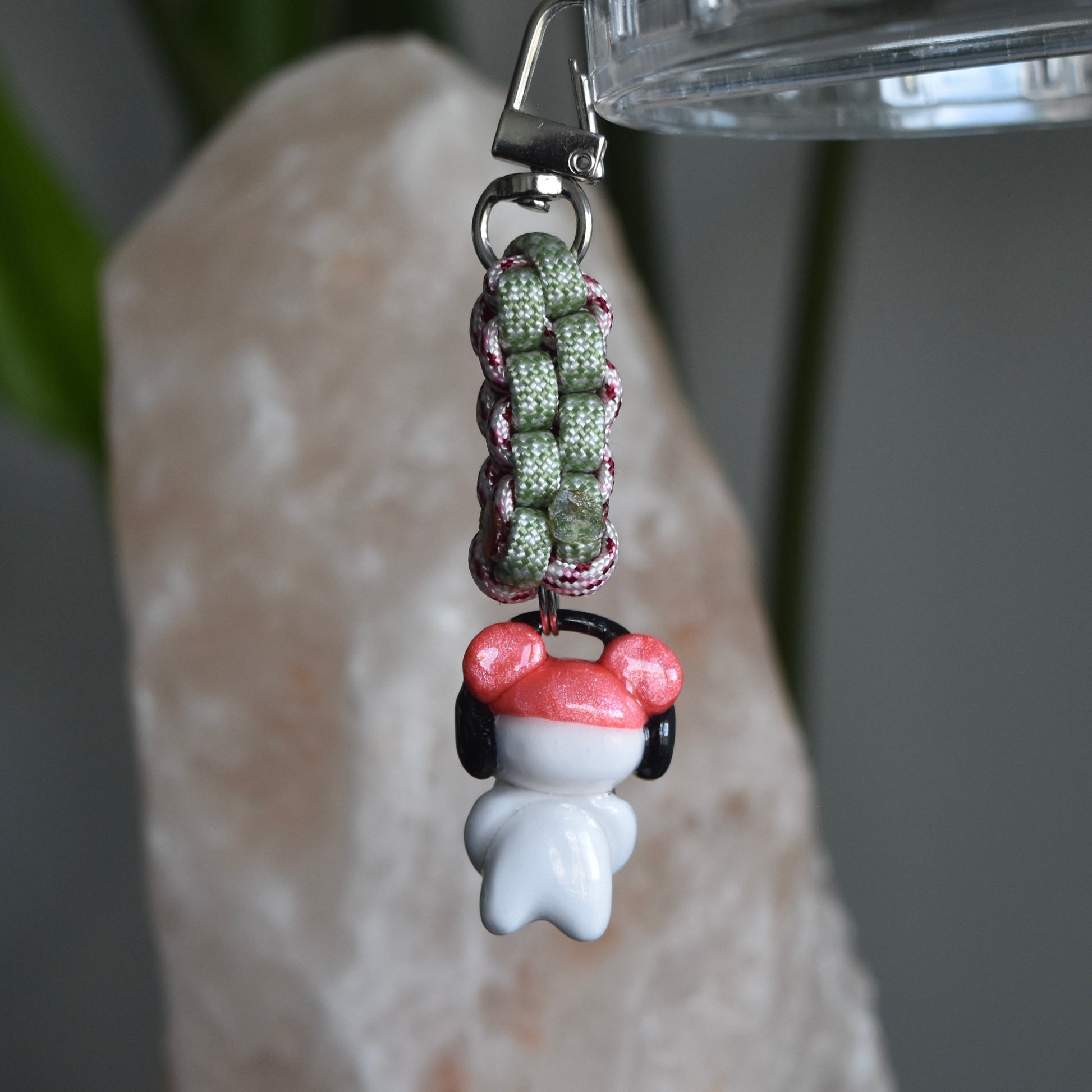 Handmade sculpted charm using polymer clay and varnished using UV resin for shine and durability. Rope also hand knotted.