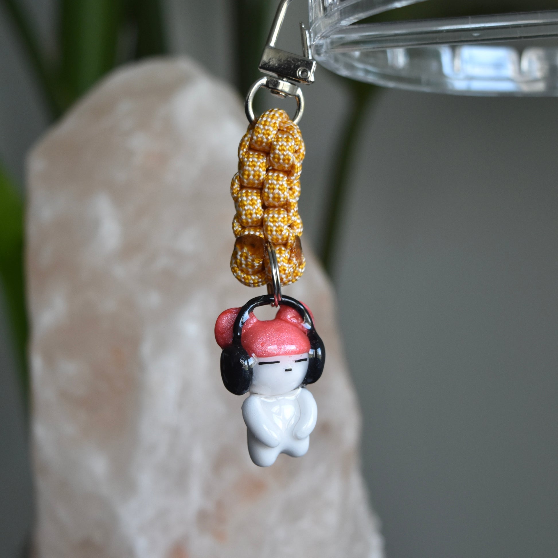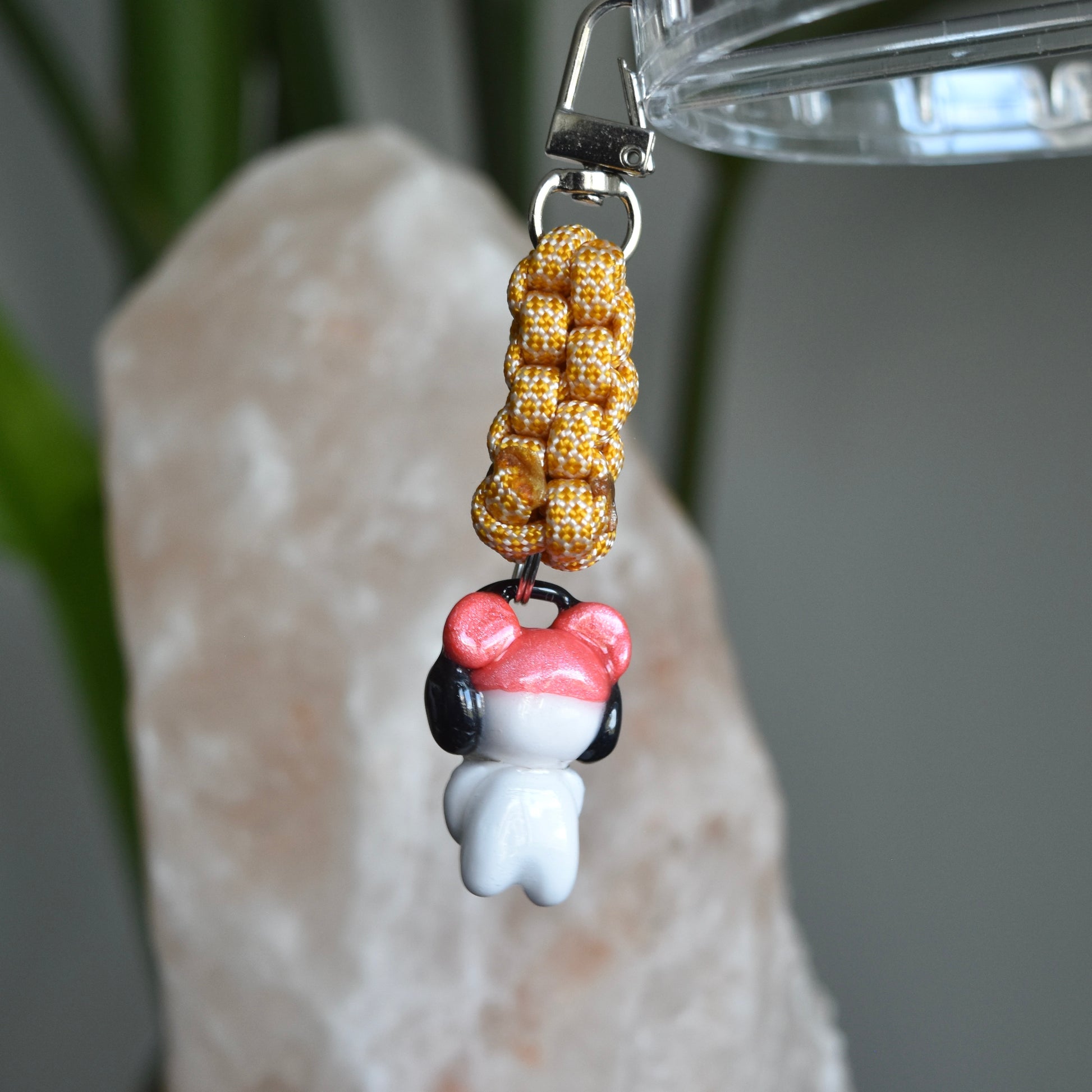 Handmade sculpted charm using polymer clay and varnished using UV resin for shine and durability. Rope also hand knotted.